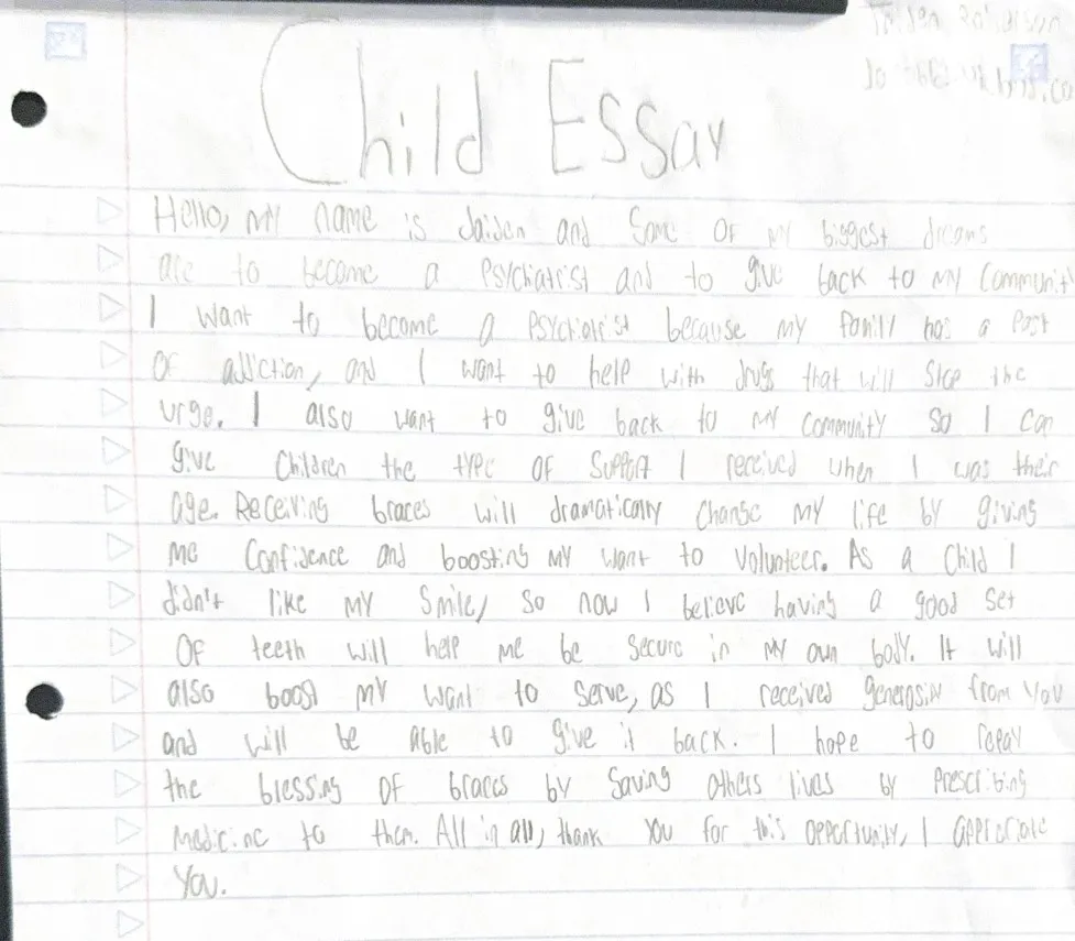 I also want to give back to my community so I can give children the type of support I received when I was their age. Receiving braces will dramatically change my life by giving me confidence and boosting my want to volunteer. As a child, I didn’t like my smile, so now I believe having a good set of teeth will help me be secure in my own body. It will also boost my want to serve as I receive generosity from you and will be able to give it back. I hope to repay the blessing of braces by saving other lives by prescribing medicine to them. All in all, thank you for this opportunity. I appreciate you.