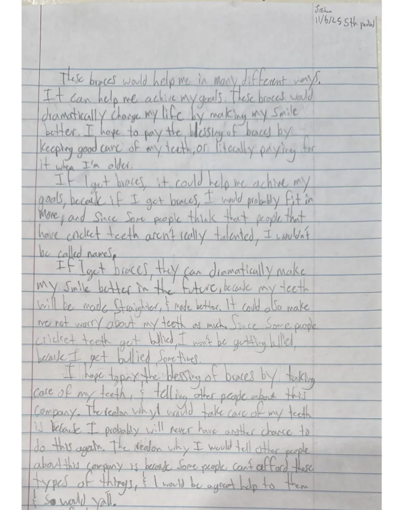 “These braces would dramatically change my life by making my smile better.”